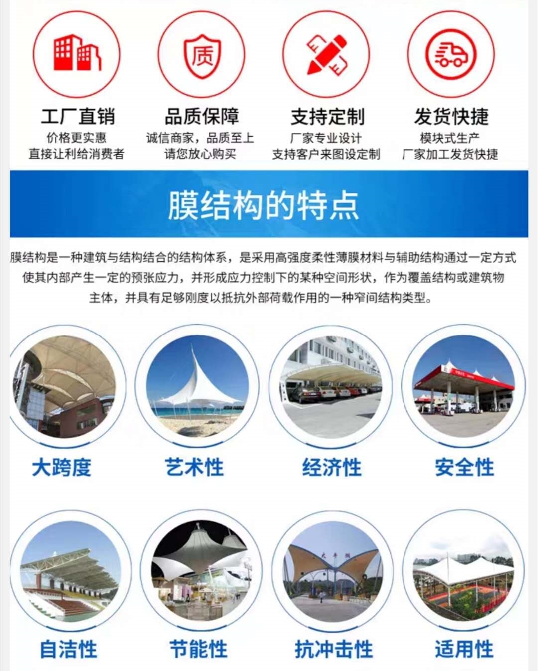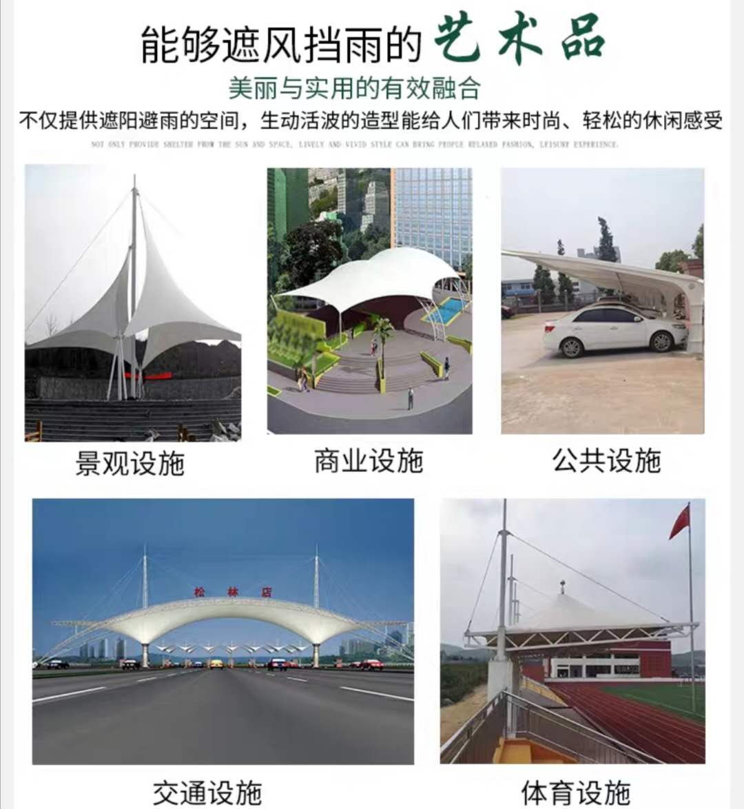 公司主要產(chǎn)品有:鋼膜結(jié)構(gòu)停車棚,城市綠化景觀棚,體育賽事看臺(tái)棚,企事業(yè)單位充電樁車棚,電動(dòng)車棚,倉儲(chǔ)推拉蓬,廠房電動(dòng)推拉蓬,消毒測(cè)溫通道棚,展覽展示遮陽棚,救災(zāi)帳篷,店鋪手搖篷及家居遙控伸縮遮陽雨篷等,歡迎來電咨詢,洽談。